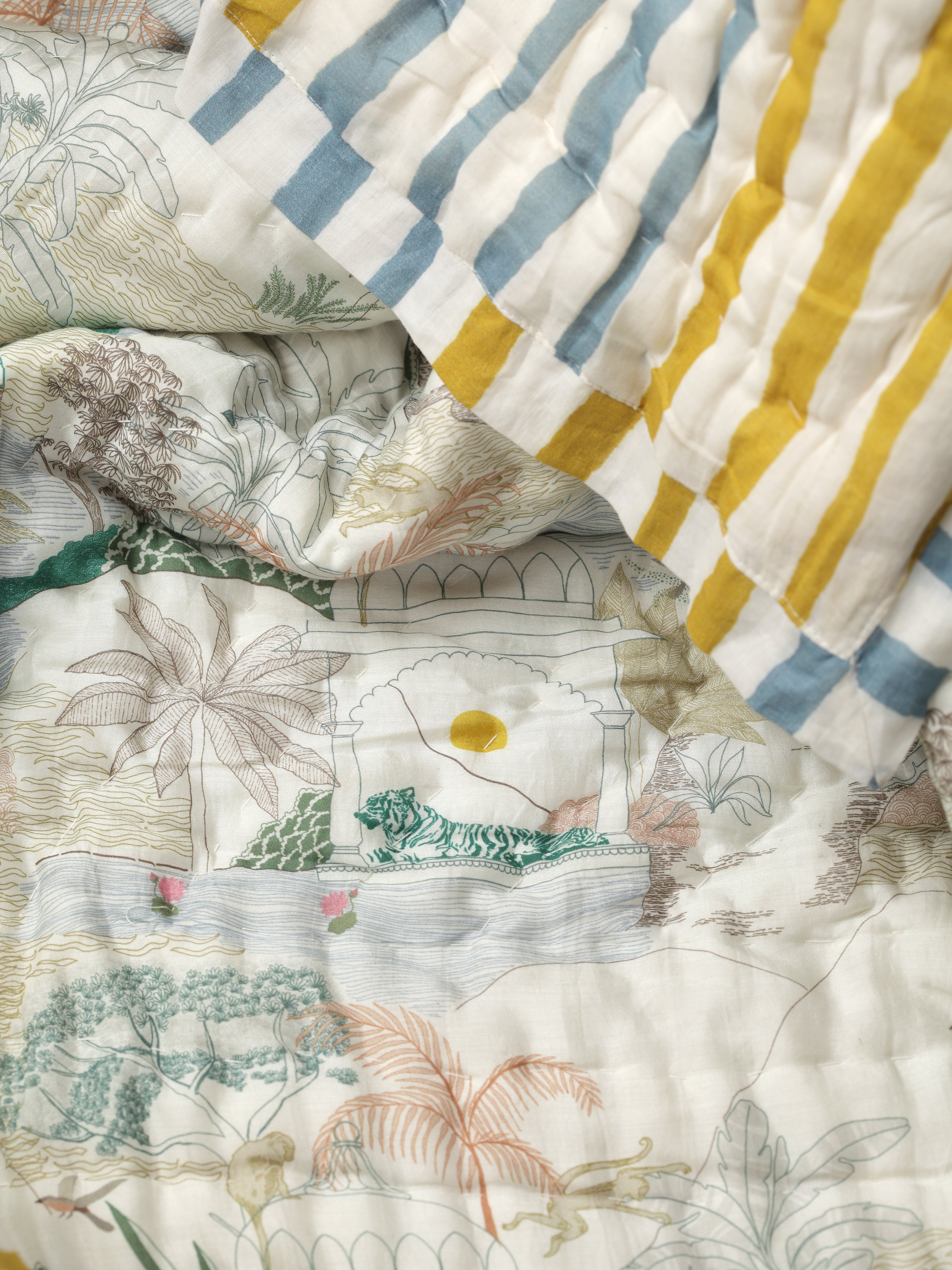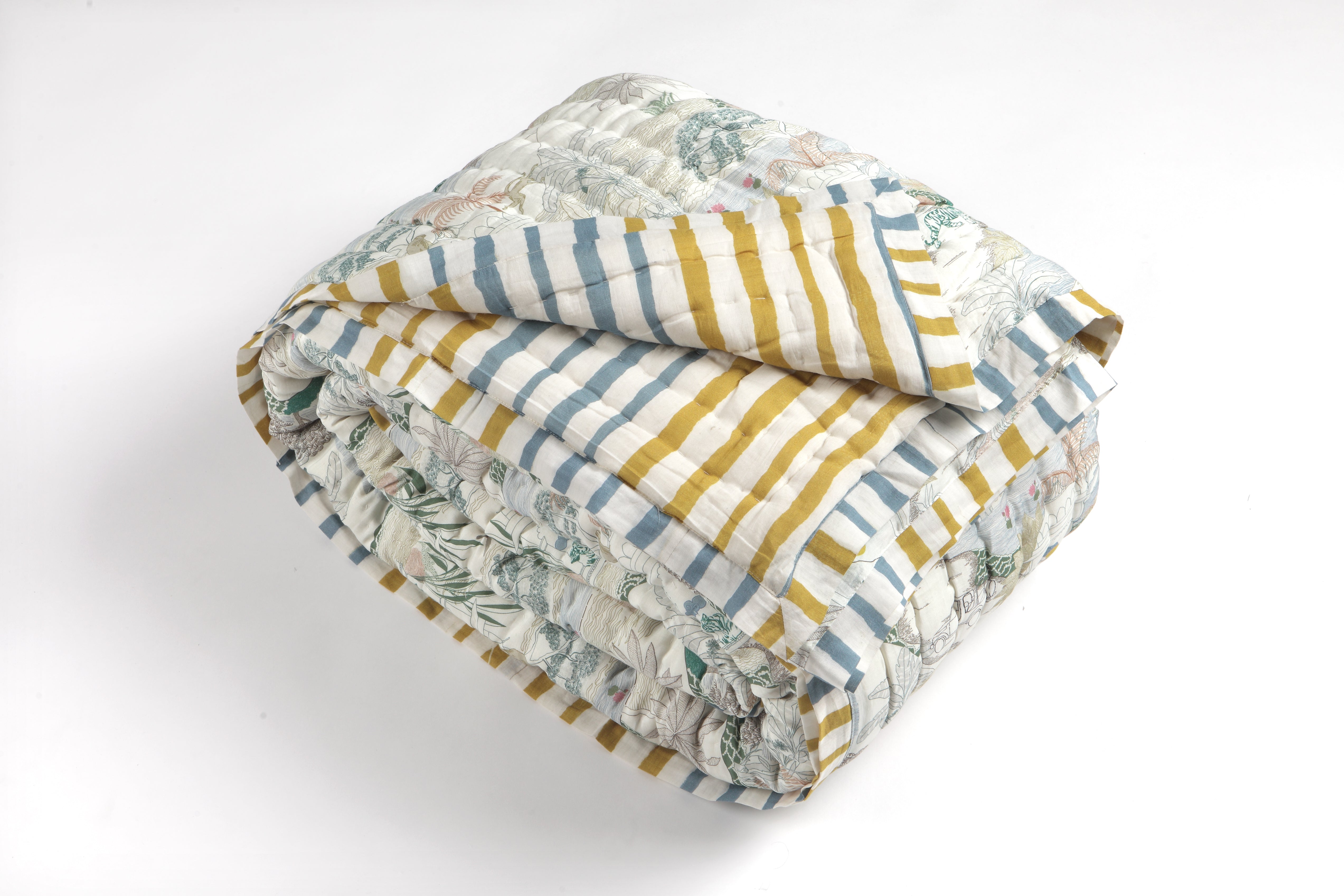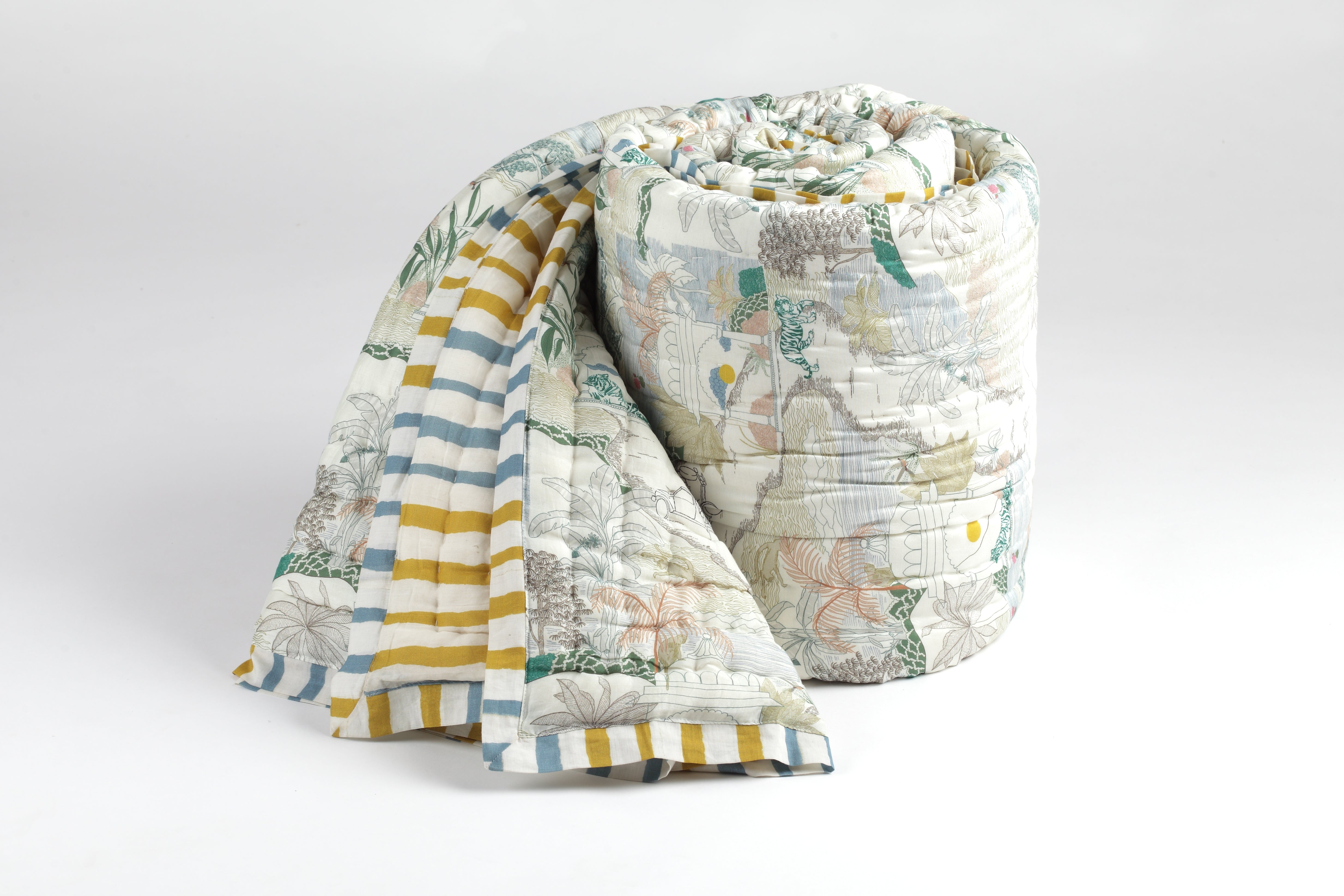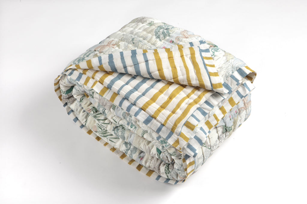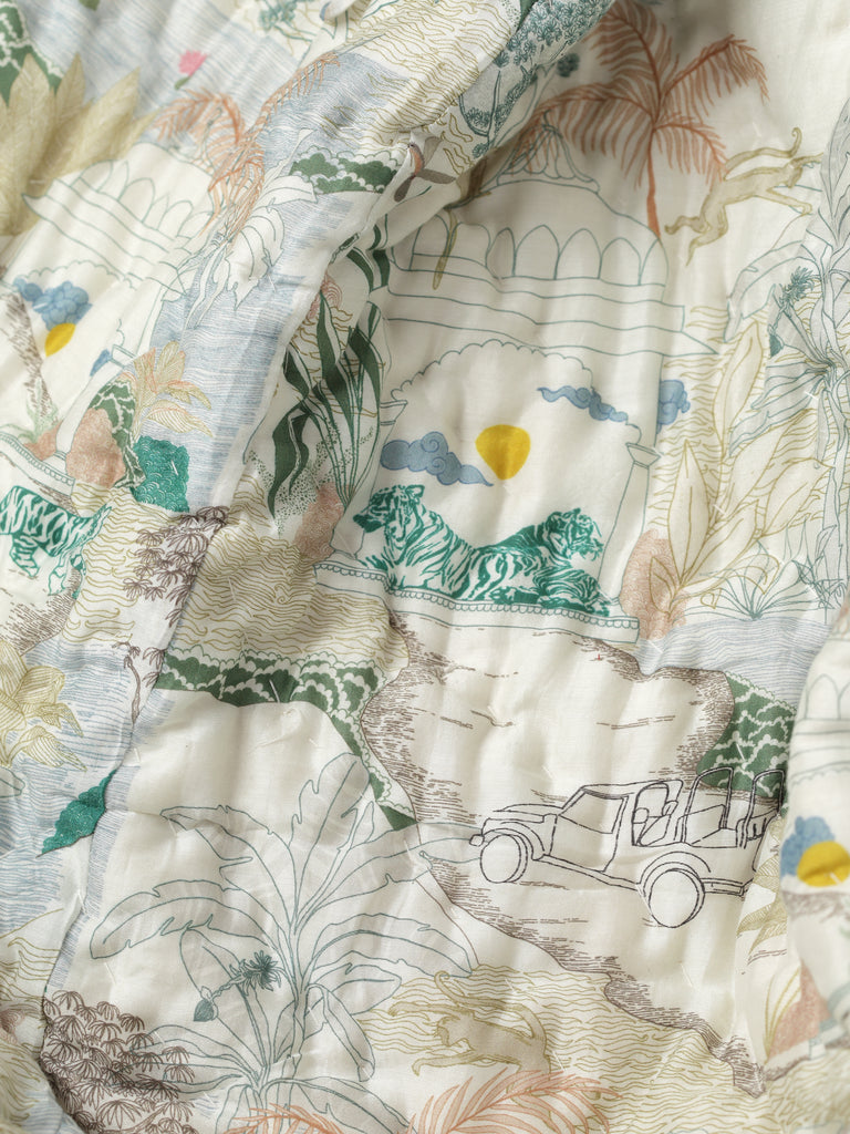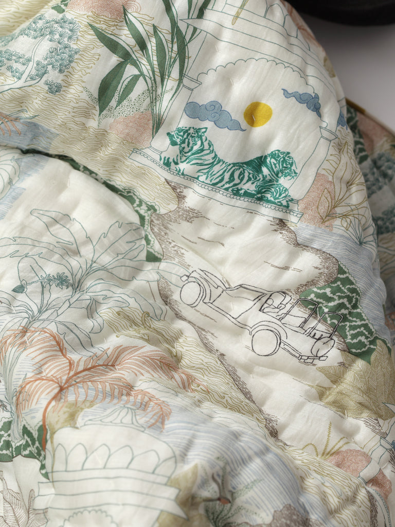 Ranthambore Jungle Green Cotton Quilt – Handcrafted Luxury Quilt from Jaipur