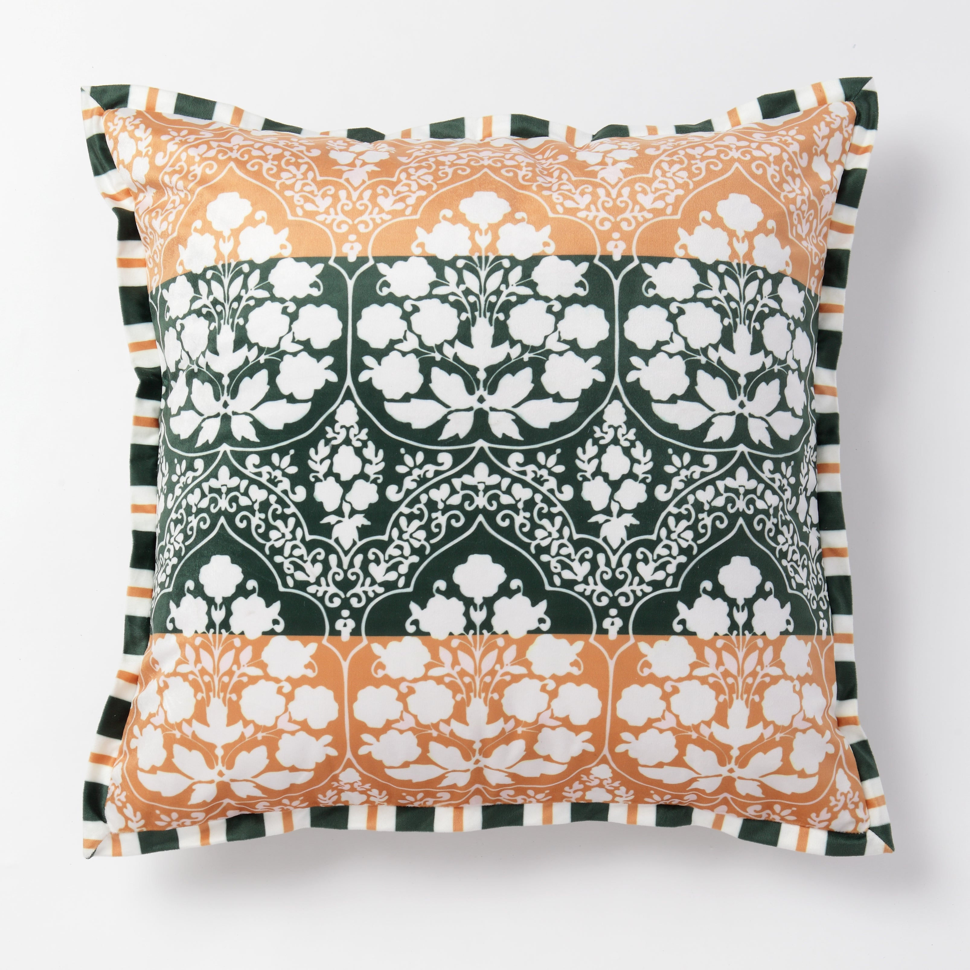 Olive Emerald Velvet Cushion with Striped Border – 20"x20"