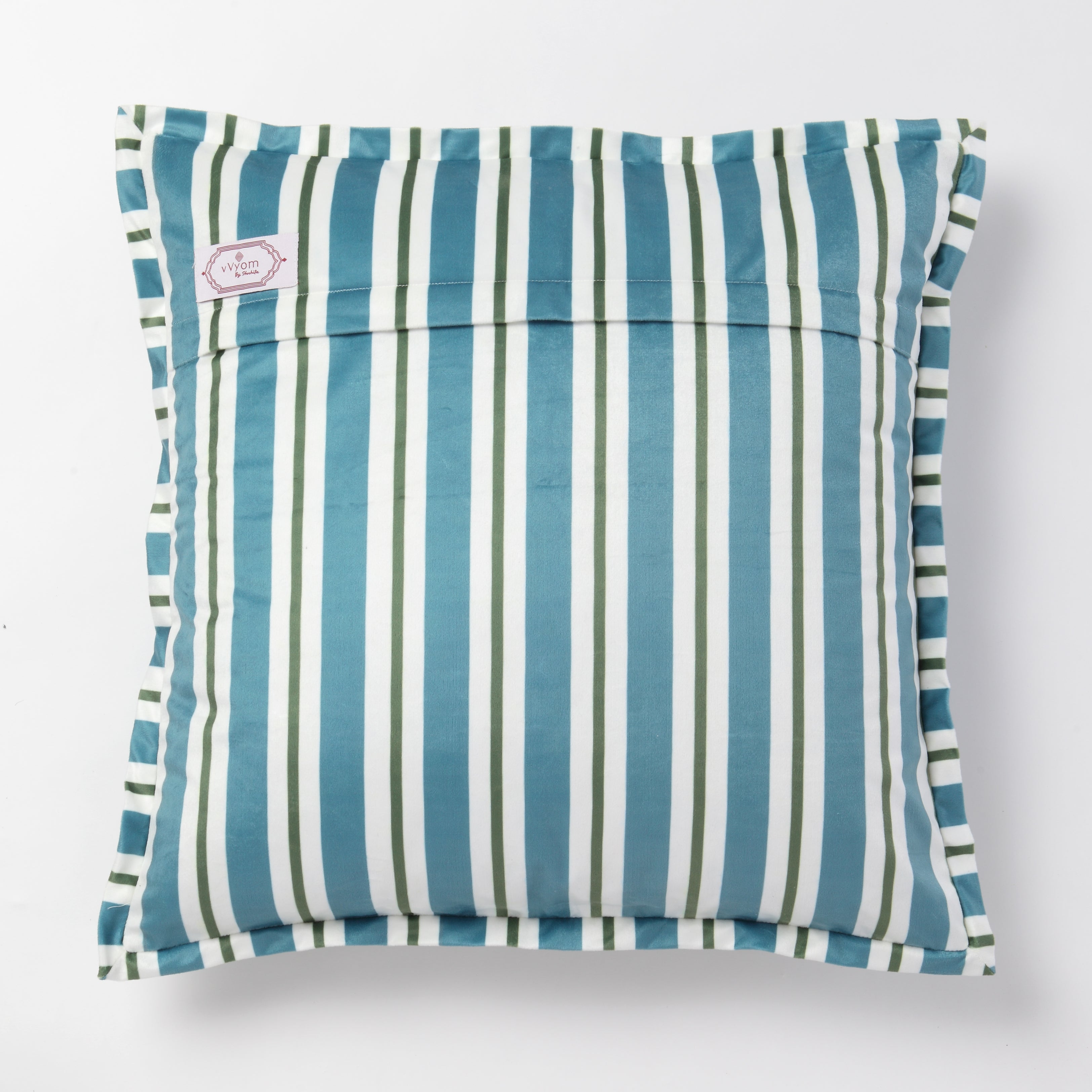 Add a layer of handcrafted charm to your home with our Turquoise Jade Velvet Cushion—a harmonious blend of traditional Indian artistry and contemporary design. Crafted from soft velvet, this cushion features an extraordinary print that seamlessly fuses traditional motifs with modern aesthetics. The striped border and backing add a touch of sophistication, making it a perfect accent for sofas, beds, or chairs.