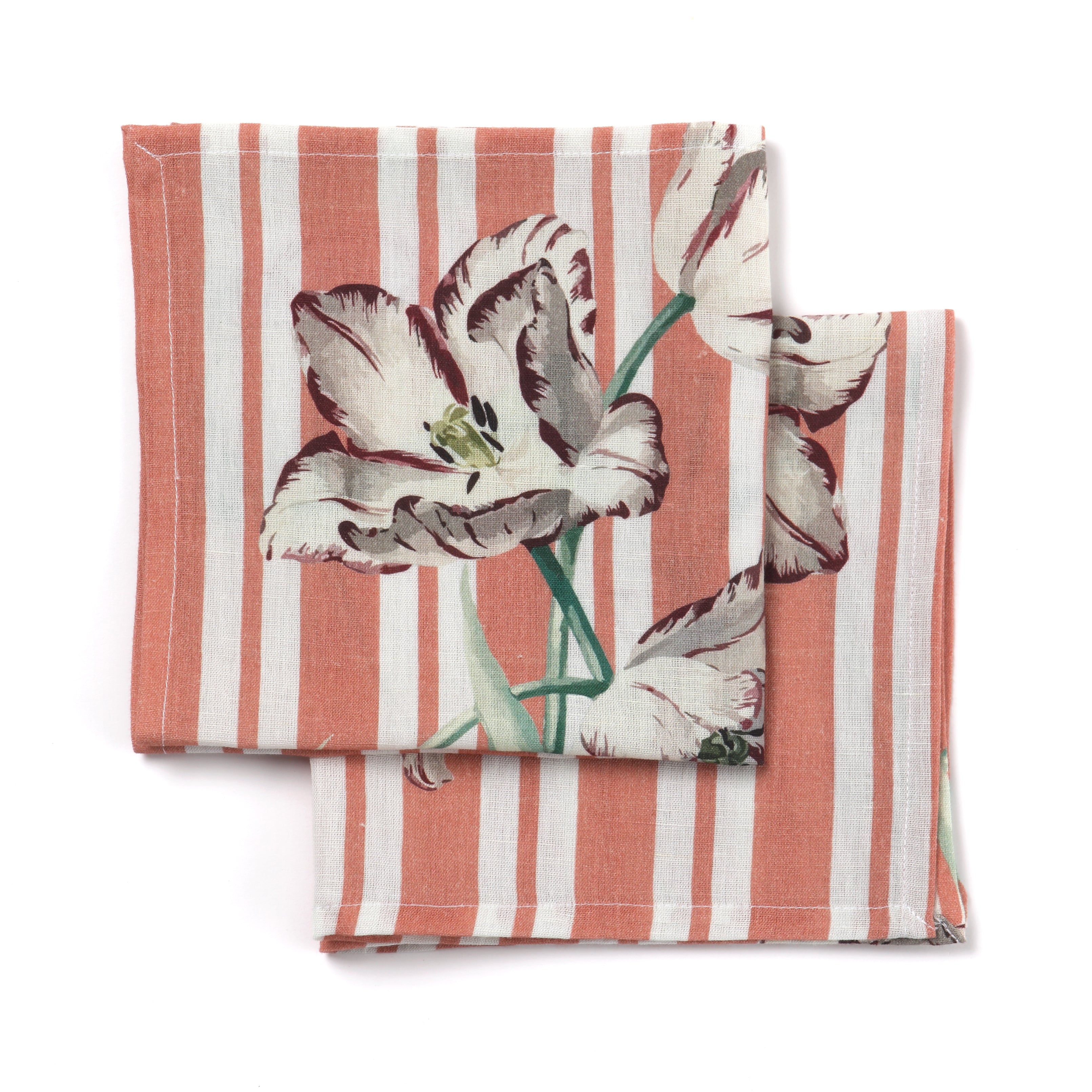 Soft yet durable, they’re perfect for everyday dining or layering into your tablescape for special occasions. The delicate balance of classic florals and rich stripes brings a subtle sophistication to any meal.