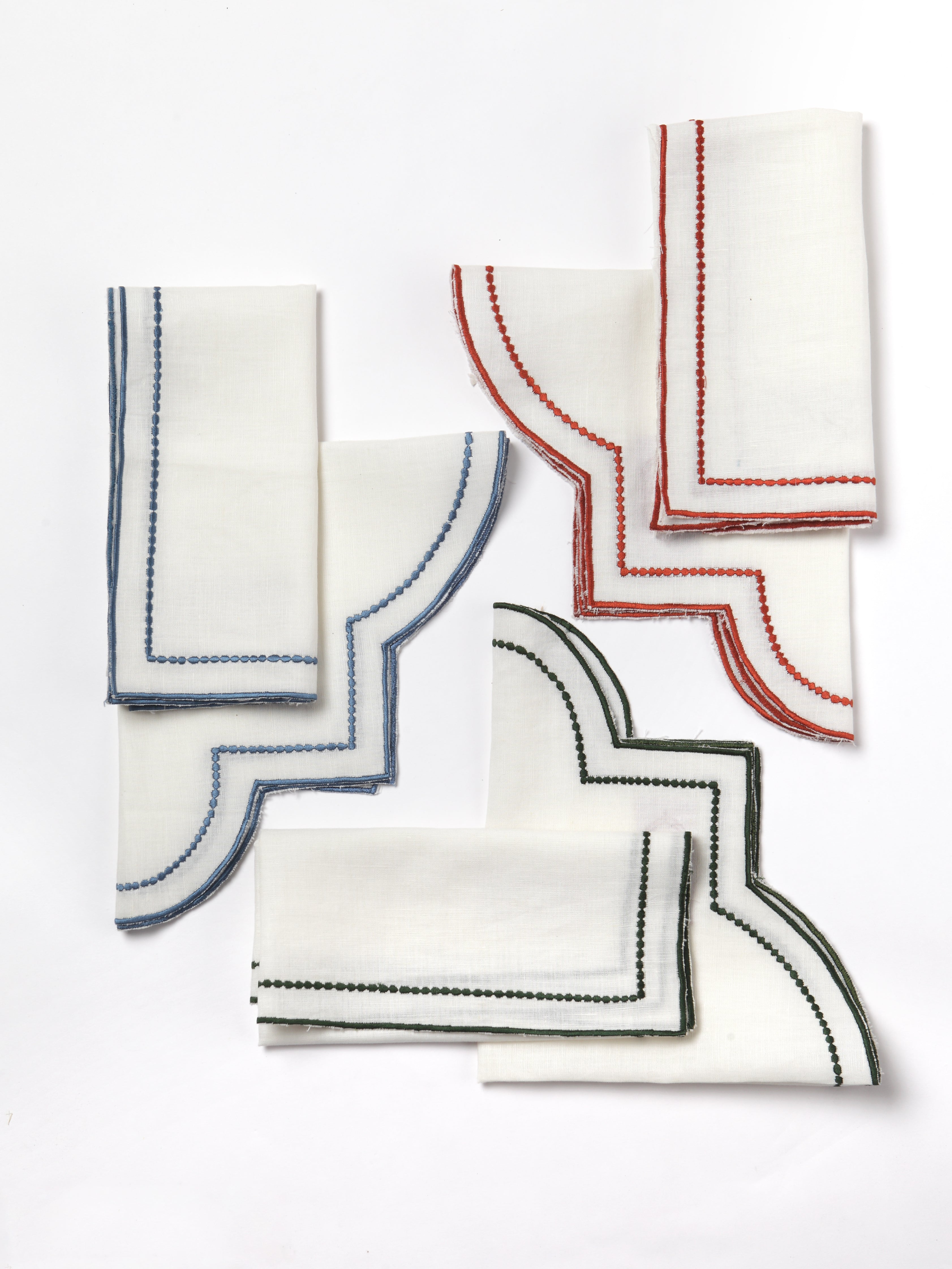 Serene White Red Linen Embroidered Table Mat and Napkin Set of 4 Each