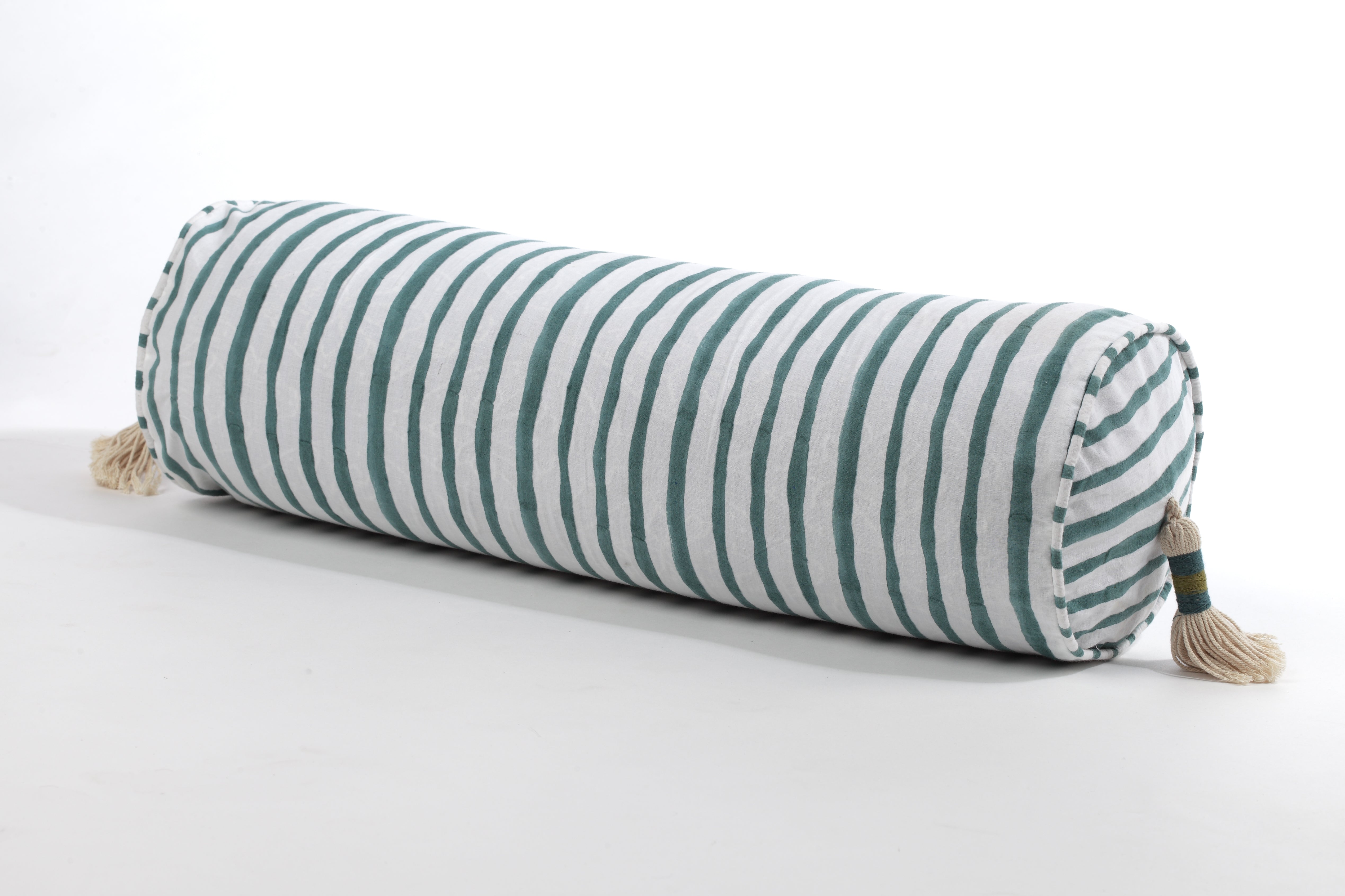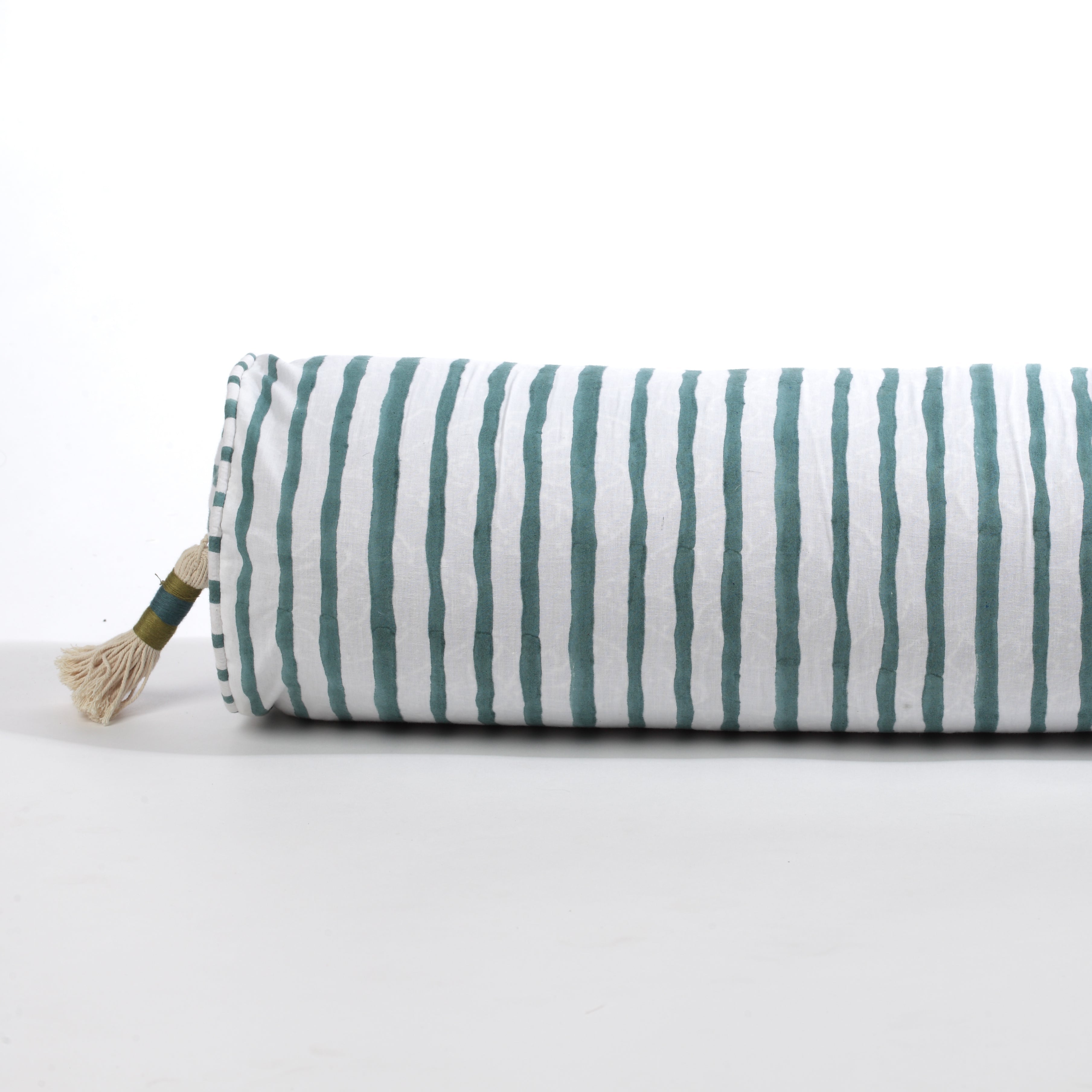 Neelam Cotton Bolster with Strips Block Print and Tassel Detailing