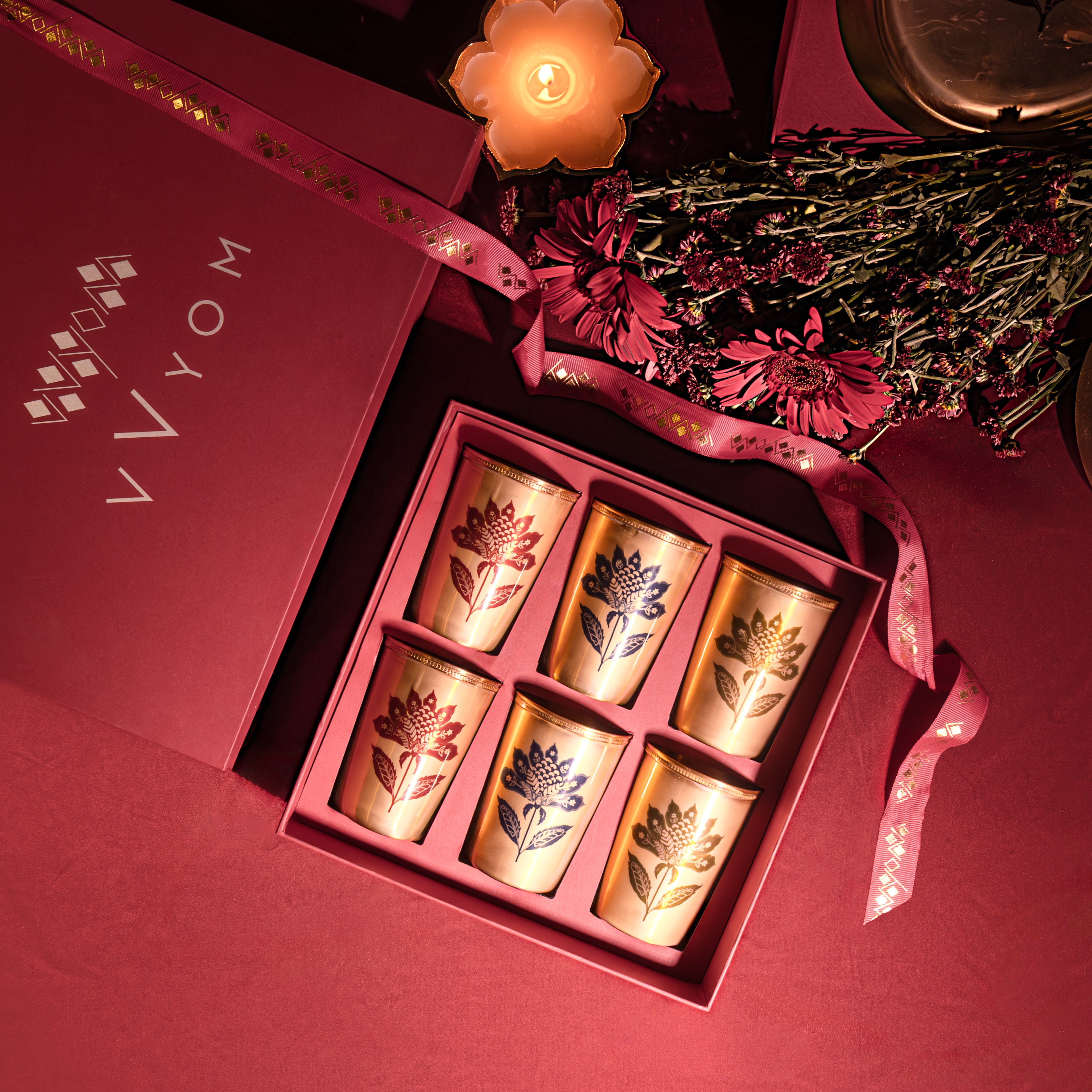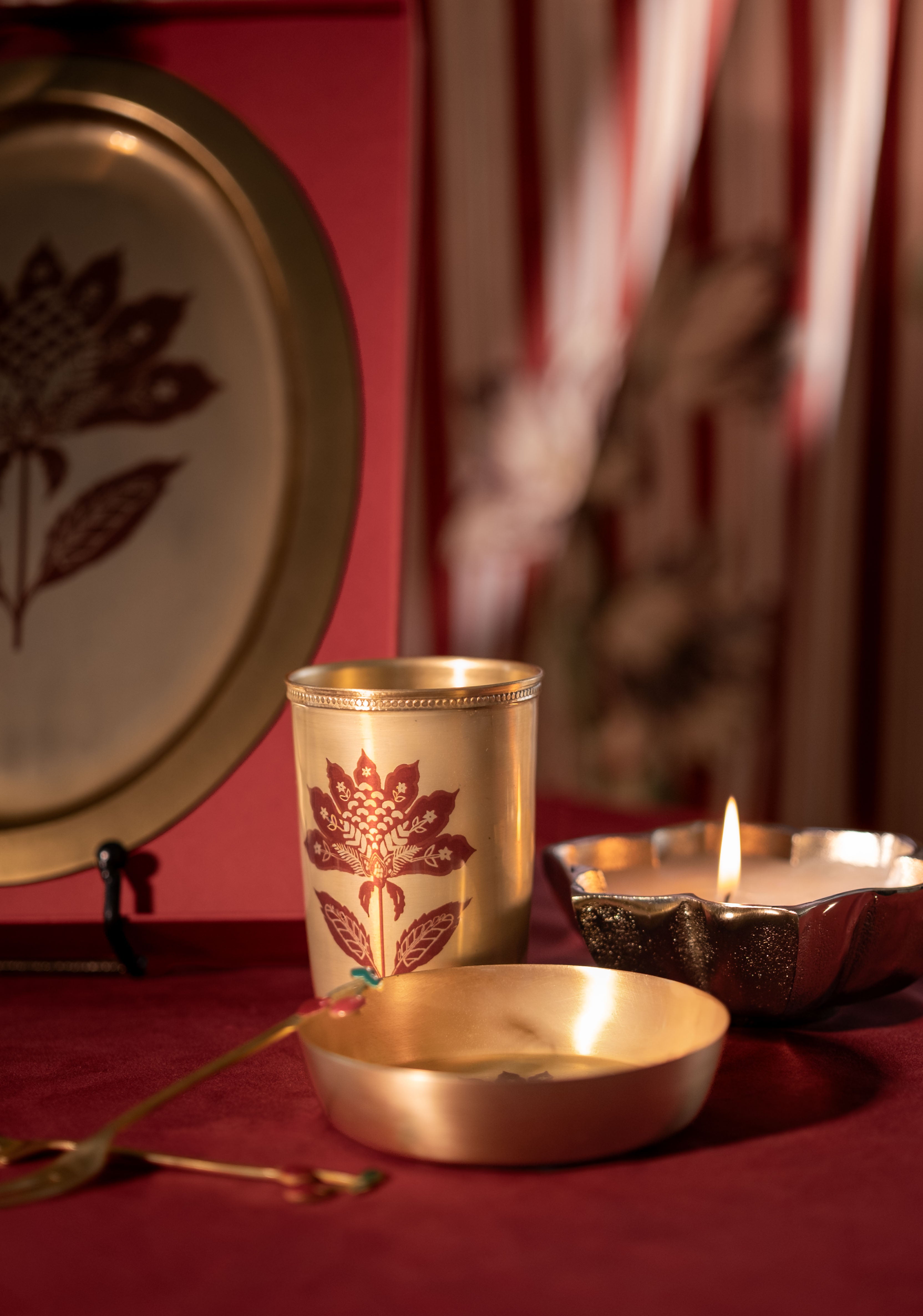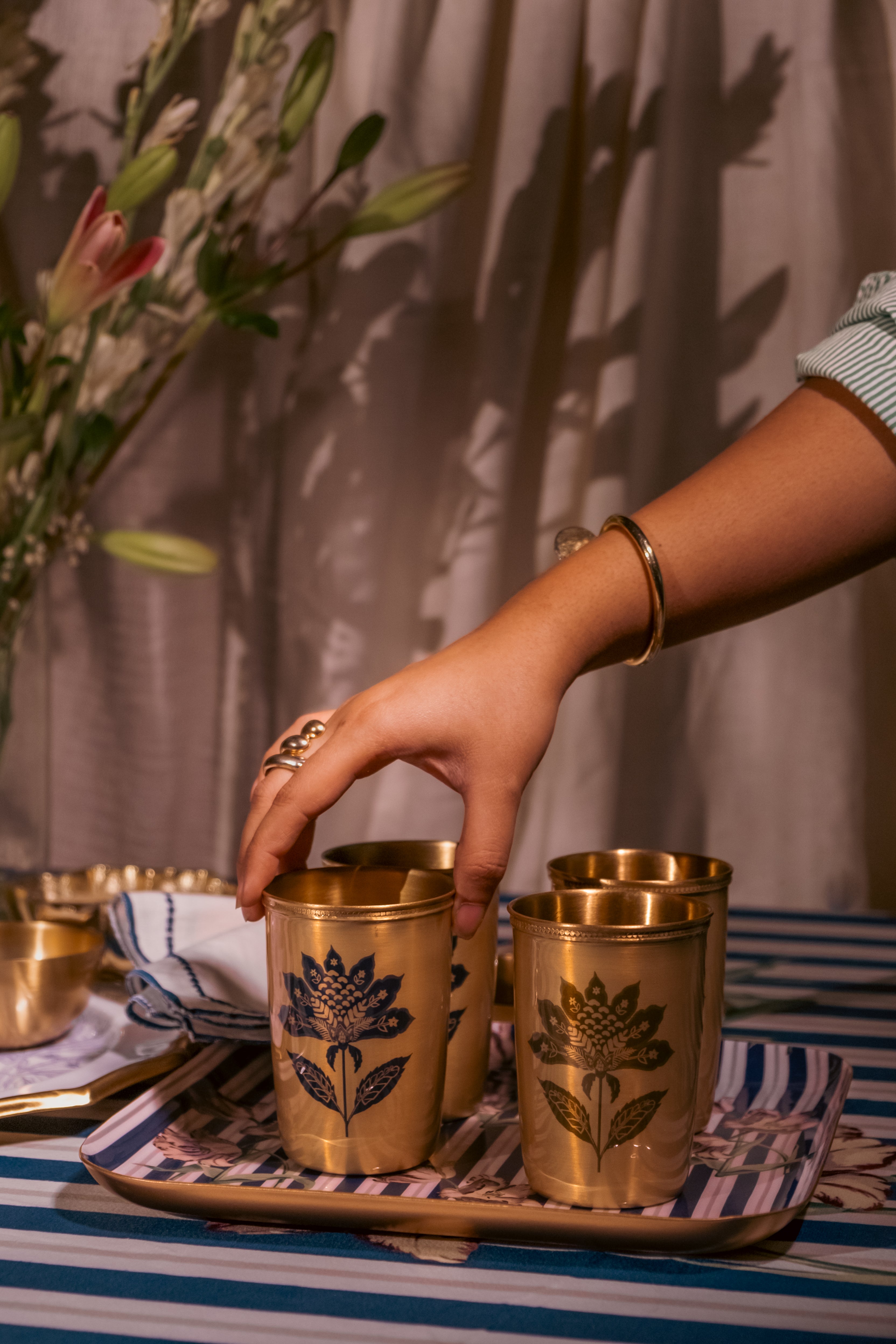 Jaipur Brass Glasses set of 6 - Indigo Scarlet & Olive