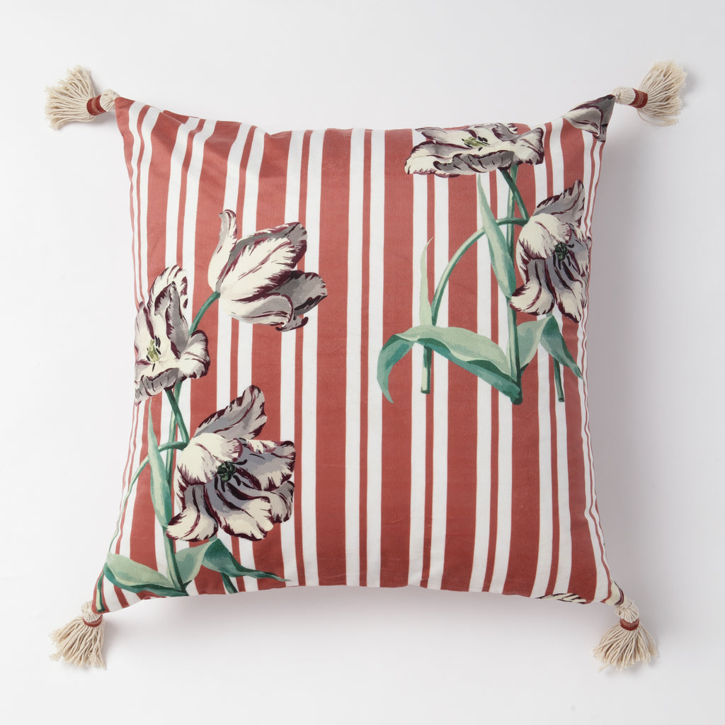 Vintage Bloom Blush Pink Cushion – 20x20 | Printed Velvet with Handcrafted Tassels