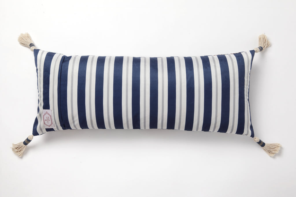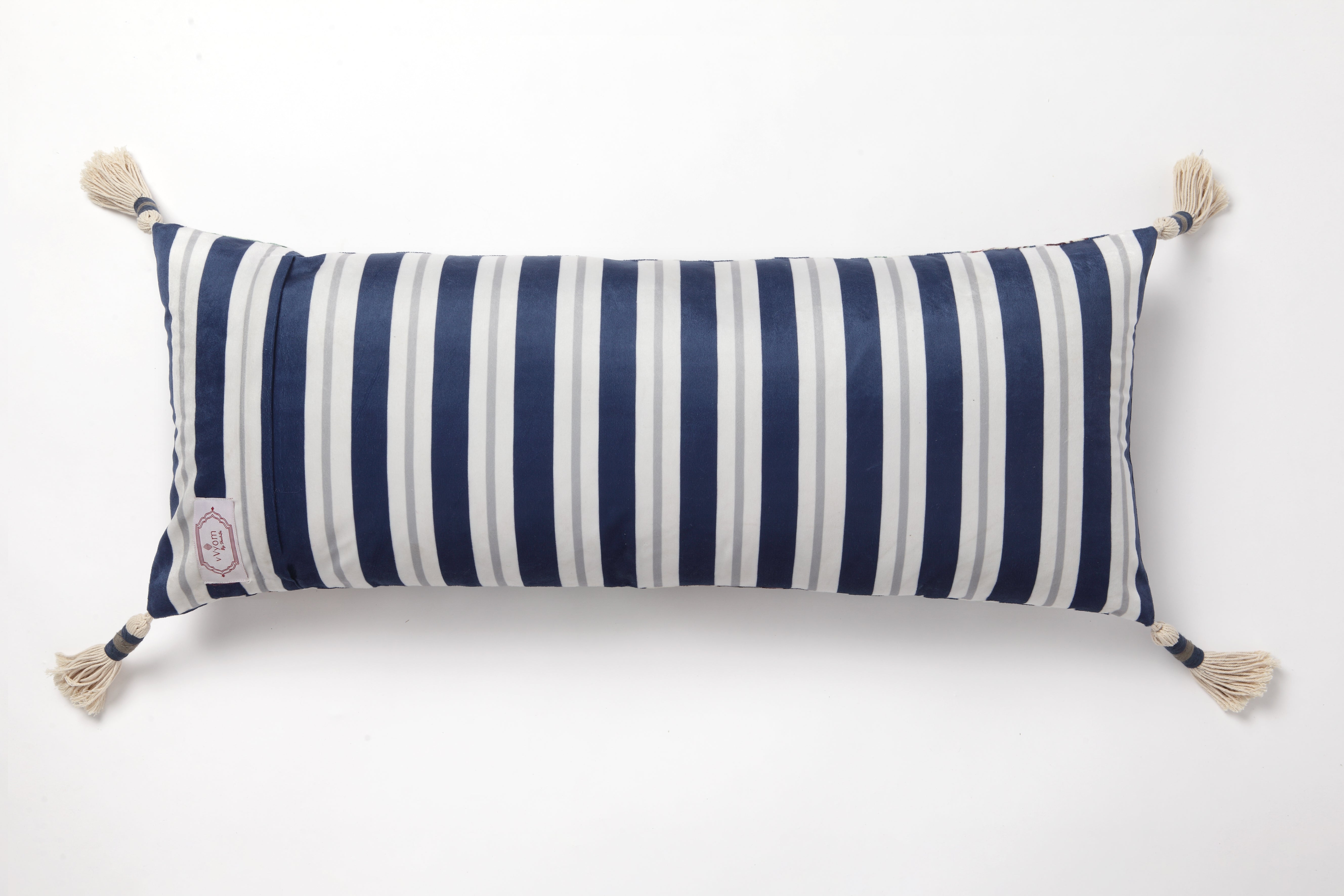 Add a layer of handcrafted charm to your home with our Indigo Bloom Lumbar Cushion. This lumbar cushion features original artwork by Shuchita, blending timeless florals and classic stripes in a deep, versatile indigo blue. Designed to bring warmth, elegance, and a touch of Indian heritage into your living space, it’s a beautiful balance of art and comfort.